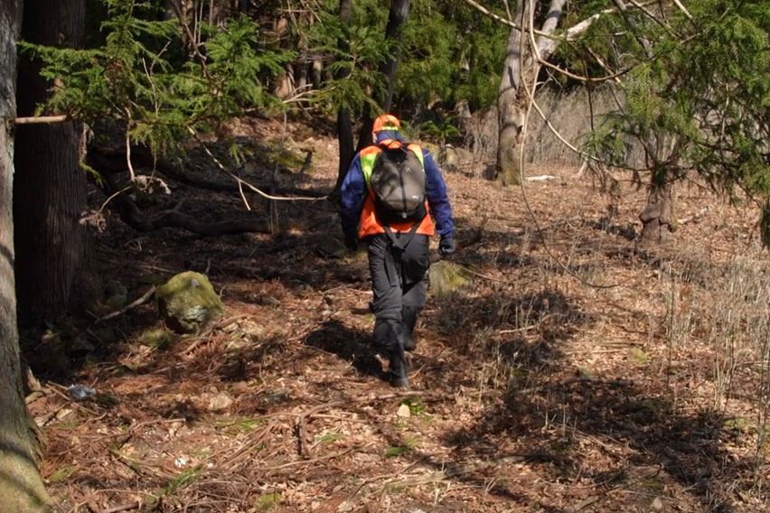 わなを仕掛ける場所を探して歩きます。