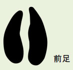 2本の爪が平行に並ぶ。イノシシの ような副蹄はつかない。