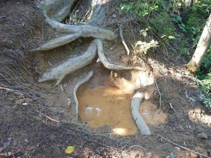- イノシシの掘り返しが多い場所