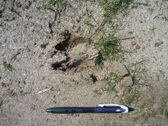 糞の量を参考にして見分けることがで きる。 歩幅は、成獣で 80