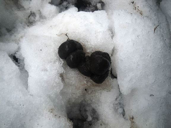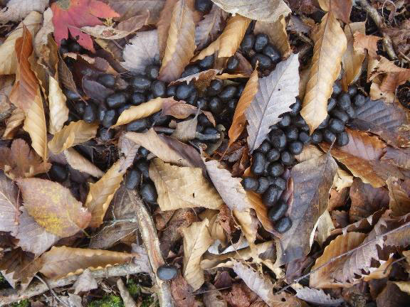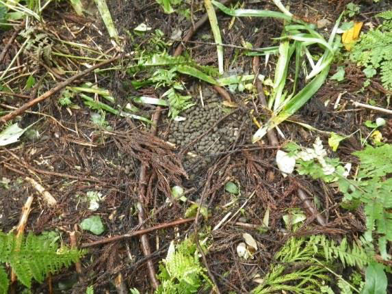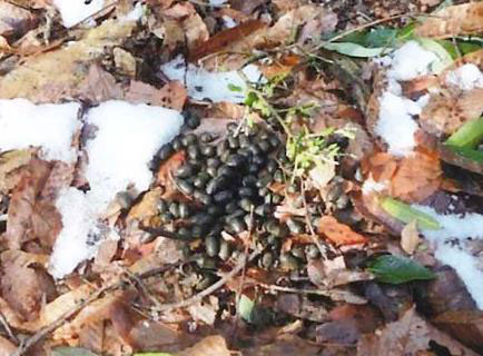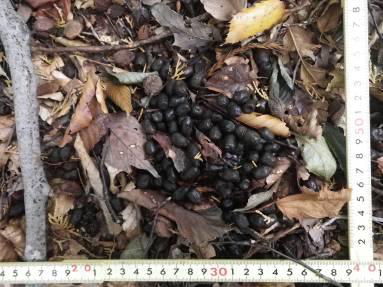 シカの糞に似ているが、1 か所に 100粒以上がまとまっている。