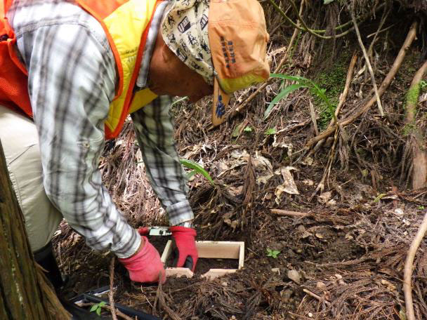 - イノシシの掘り返しが多い場所
