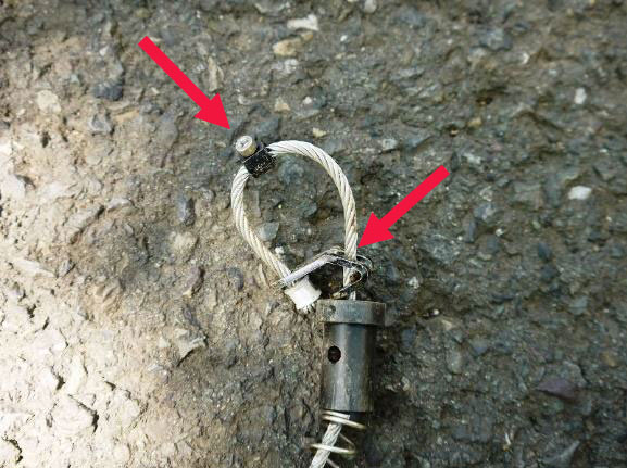 ※ワイヤーの内部断裂が発生しており、強度が低下しています