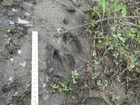 糞の量を参考にして見分けることがで きる。 歩幅は、成獣で 80