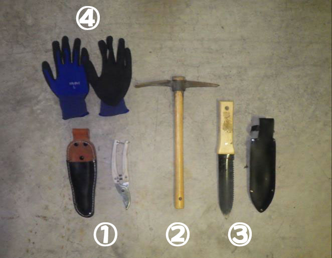- ④.作業手袋(頑丈なもの)など