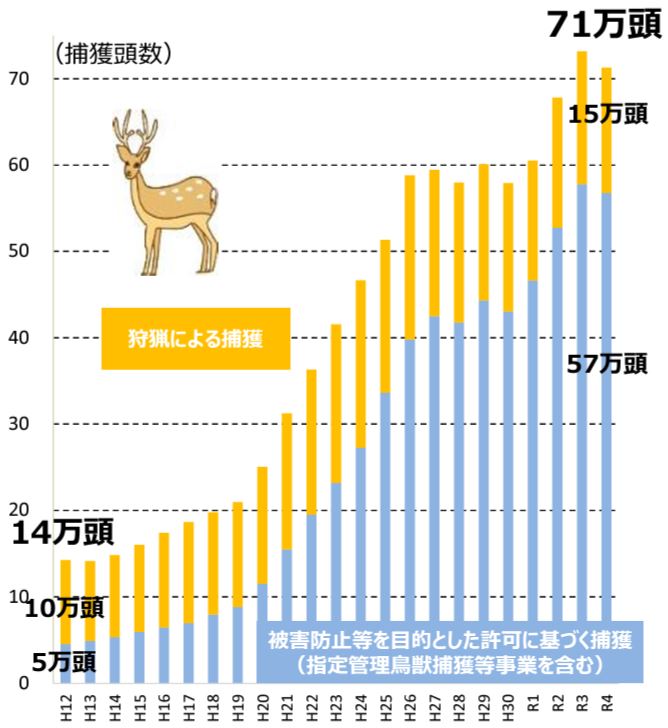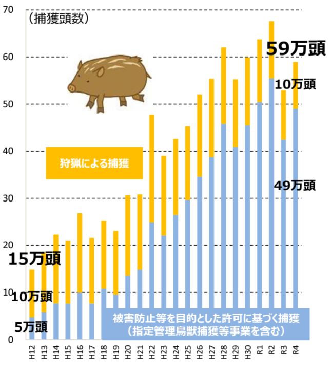 【出典】「全国の野⽣⿃獣による農作物被害状況について」(農林⽔産省)