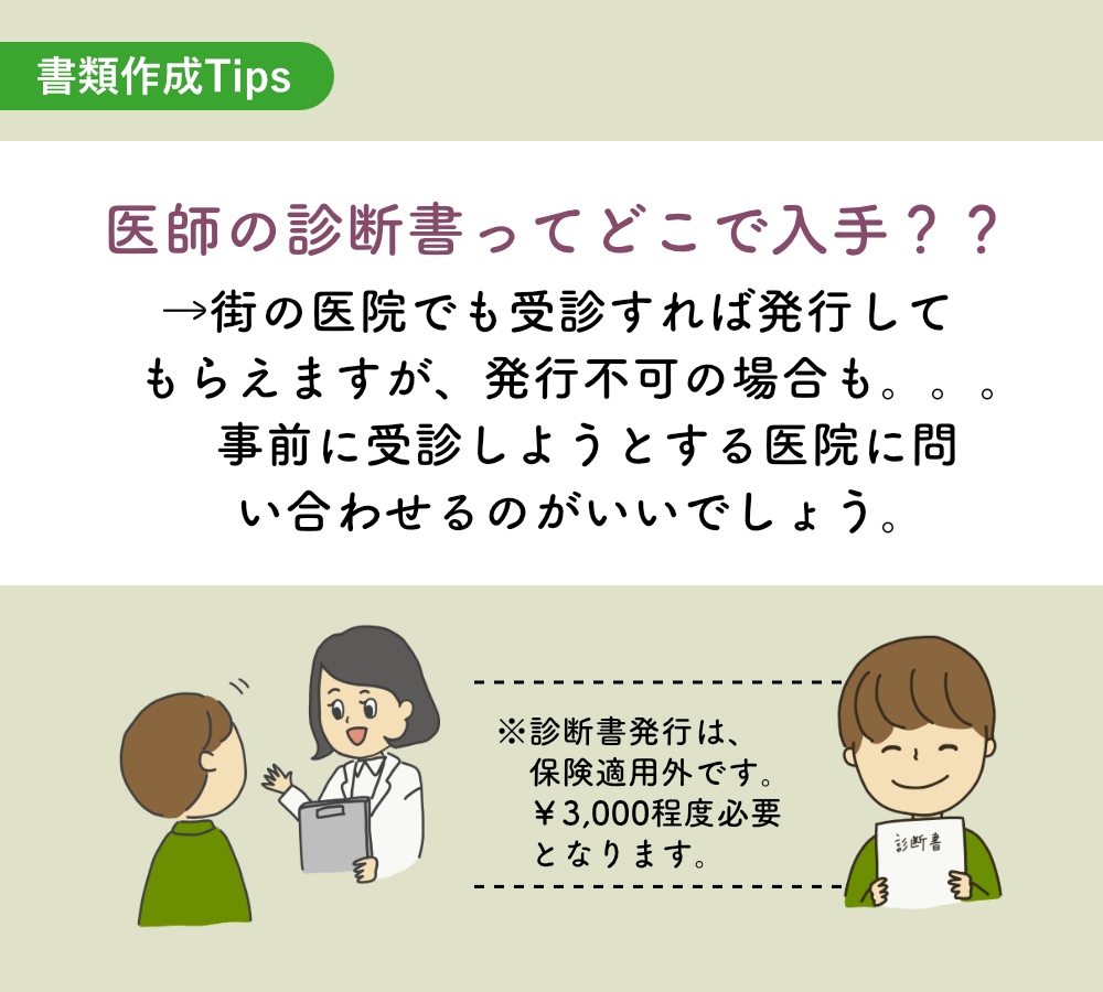 医師の診断書 ………1枚(かかりつけ医または精神科・心療内科の診断書)