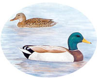 全長は約60cmで、胴体はカラスよりやや大きい。カモ類では、カルガモと並んで大型。雌雄異色。オスの方がメスよりやや大きい。 オスは、緑色の頭部、白い首輪、鮮やかな黄色いくちばしが目立つ。また、カルガモと同様に、飛翔時に翼の下面の白が目立つ。メスは他のカモ類のメスと同様に、全体が褐色の地味な色調。