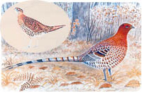 キジ(亜種のコウライキジを除く)は、北海道と沖縄を除き、全国的に分布。留鳥。国鳥とされている。亜種のコウライキジは中国・朝鮮半島原産の移入種。対馬と北海道に狩猟の対象として放鳥した結果、野化したもの。