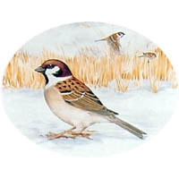 体型や鳴声、生息環境などが狩猟鳥のスズメにかなり似ているが、スズメはほおに黒斑があることにより区別できる。