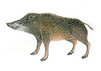 平野部から山地にかけての森林や農耕地などに生息する。一晩の行動半径は数km~十数kmに及ぶ場合がある。小さな群れをつくって行動する場合が多い。地上の草むらなどで繁殖する。 雑食性であり、ヤマイモやタケノコなどの植物質のもの、昆虫やヘビなどの動物質のものを採食するために地面をよく掘り起こす。