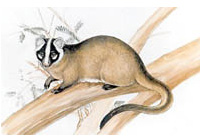 頭胴長、尾長とも約10cm。雌雄同色・同大。狩猟獣の中で一番小さい。全身が淡褐色で、背部にある汚白色と暗褐色の縦縞が特徴的。眼のまわりも白っぽく、その下部には暗色の縁取りがある。